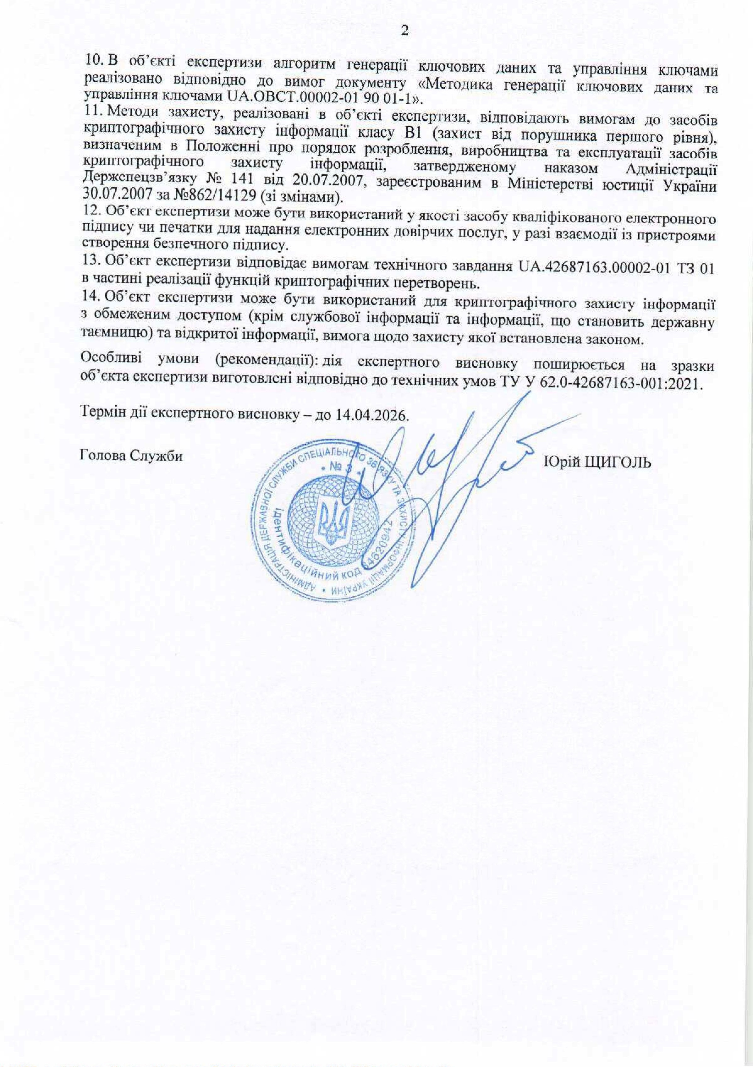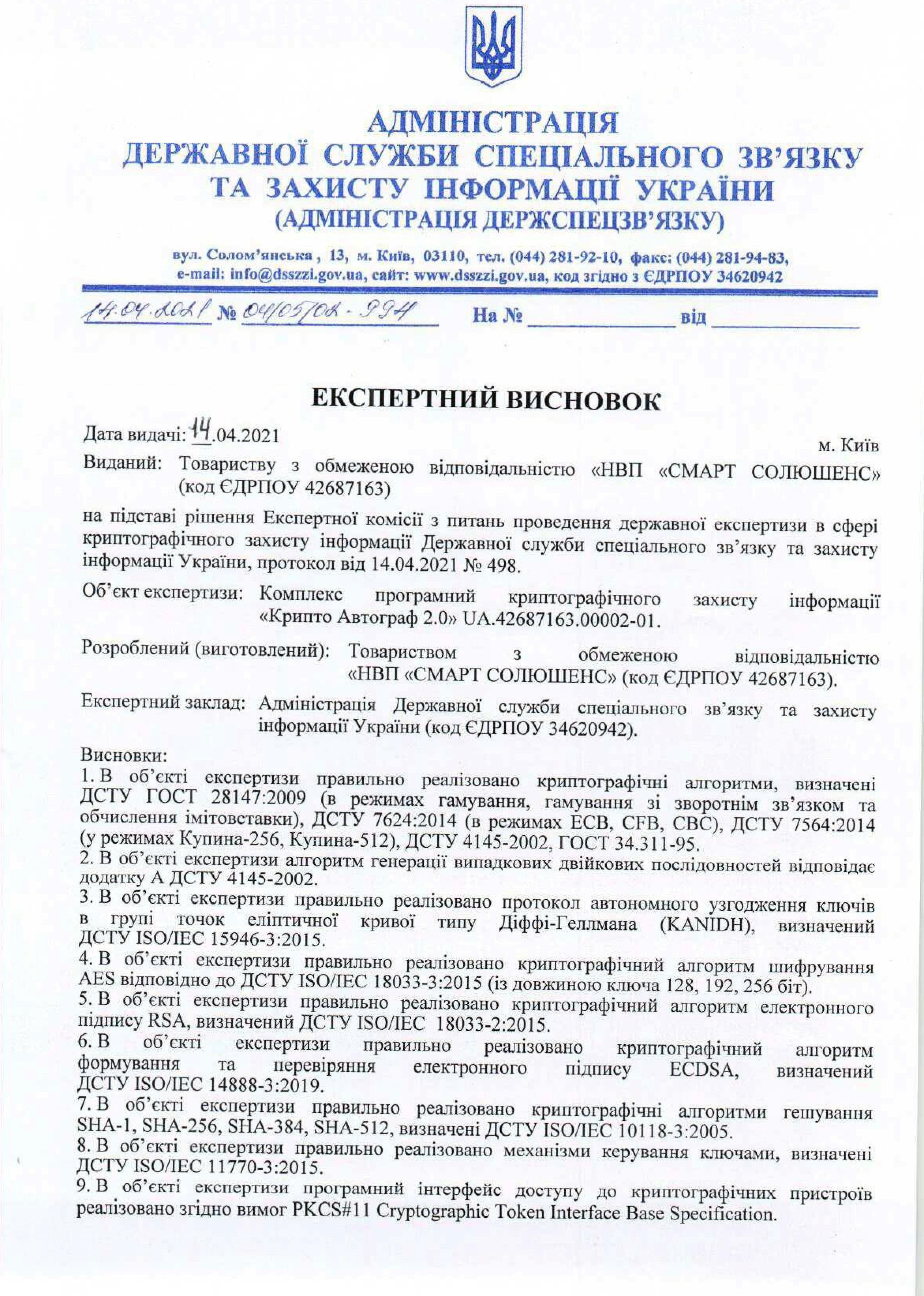 Отримано експертний висновок ДССЗЗІ в сфері криптографії